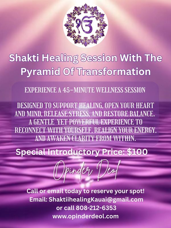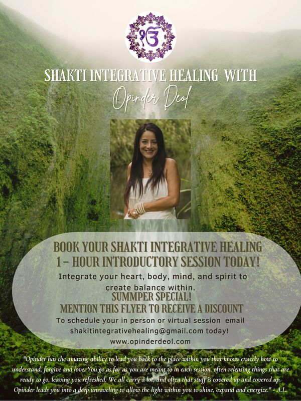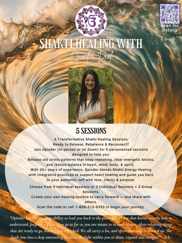 Experience personalized healing through Shakti Energy Healing with Opinder. These 5 sessions—3 individual and 2 group—help release energetic blocks, restore balance, and align with your authentic self. If you're not comfortable in a group setting and would prefer all